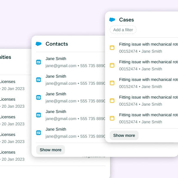 As mentioned above, Jira is now supported with multiple cards! Customers face a variety of stakeholders in your company - sales reps, customer success experts, technical support and more. With the addition of Jira to our supported integrations, you can now interact with every Jira task and feature request related to the Salesforce or HubSpot customer you’re looking at without ever having to leave your workspace.